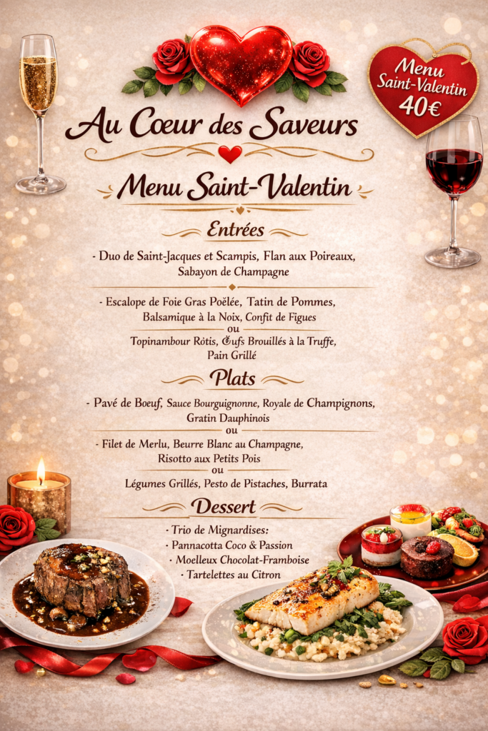 Voici le menu du 12 au 16 janvier et le menu de saint-valentin qui est déjà sorti :